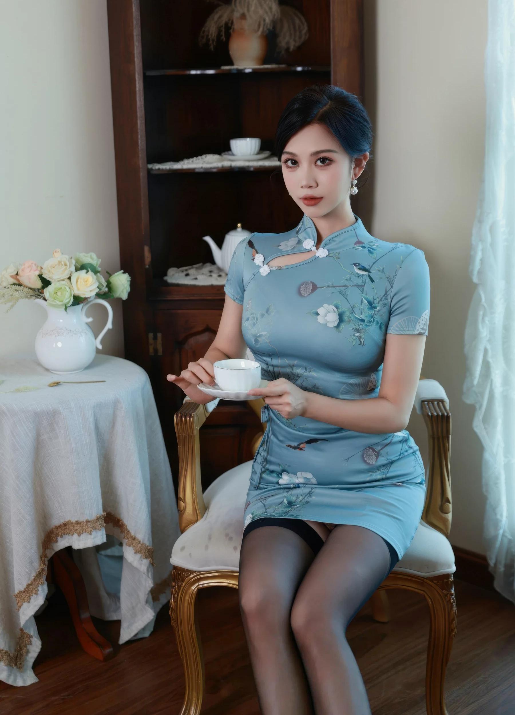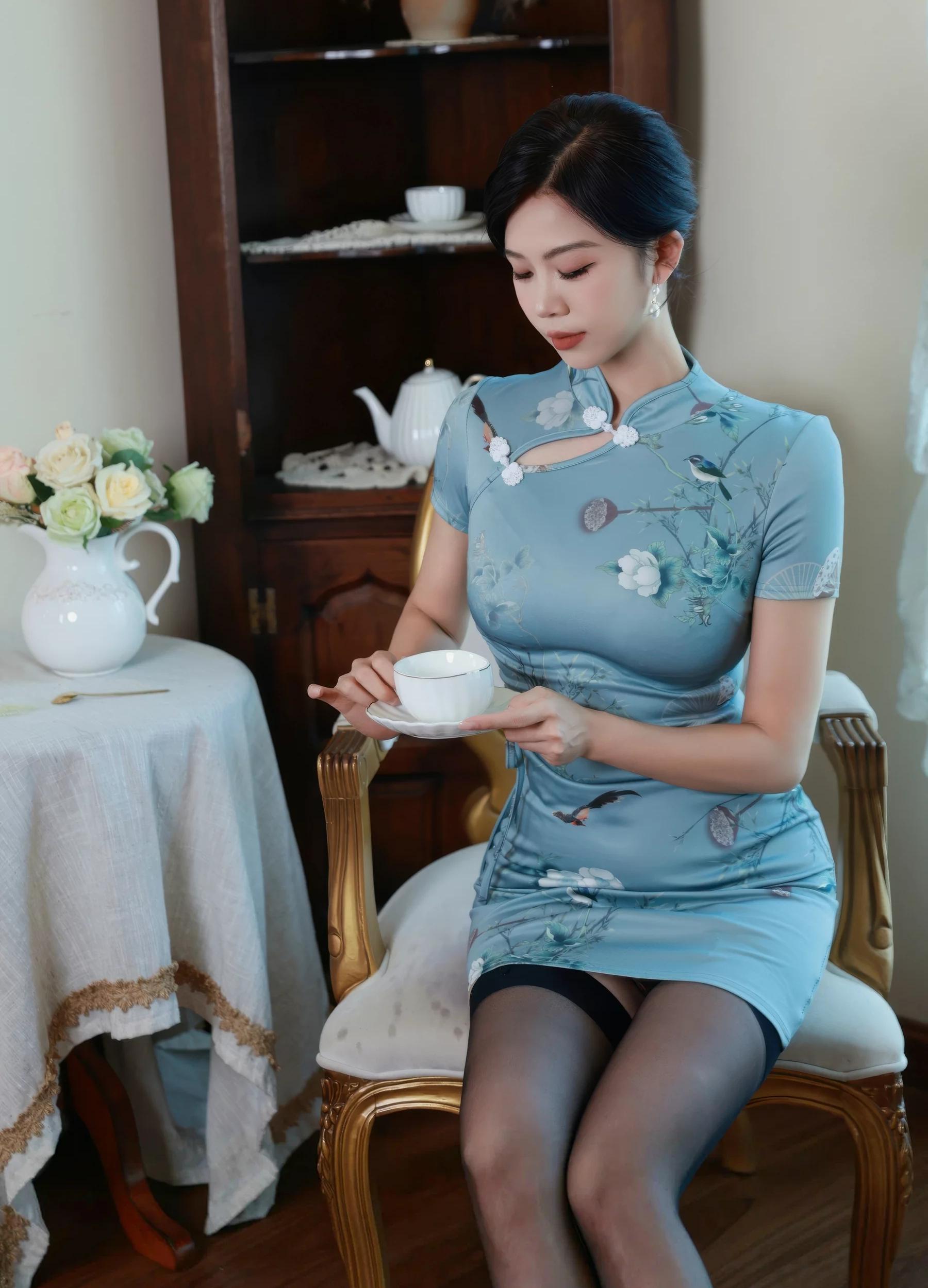 新人@玫瑰我爱你 感性摄影发布,感性蓝色旗袍搭配感性魅惑黑色的丝,凹凸别致的娇艳欲滴,全套摄影共70P足量放送,希望大家喜欢和多多支持新人。女神玫瑰我爱你第10套摄影作品。。摄影:波酱女摄。。